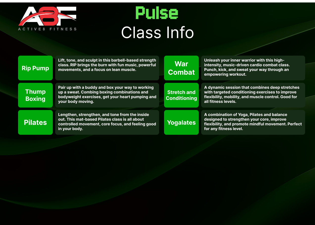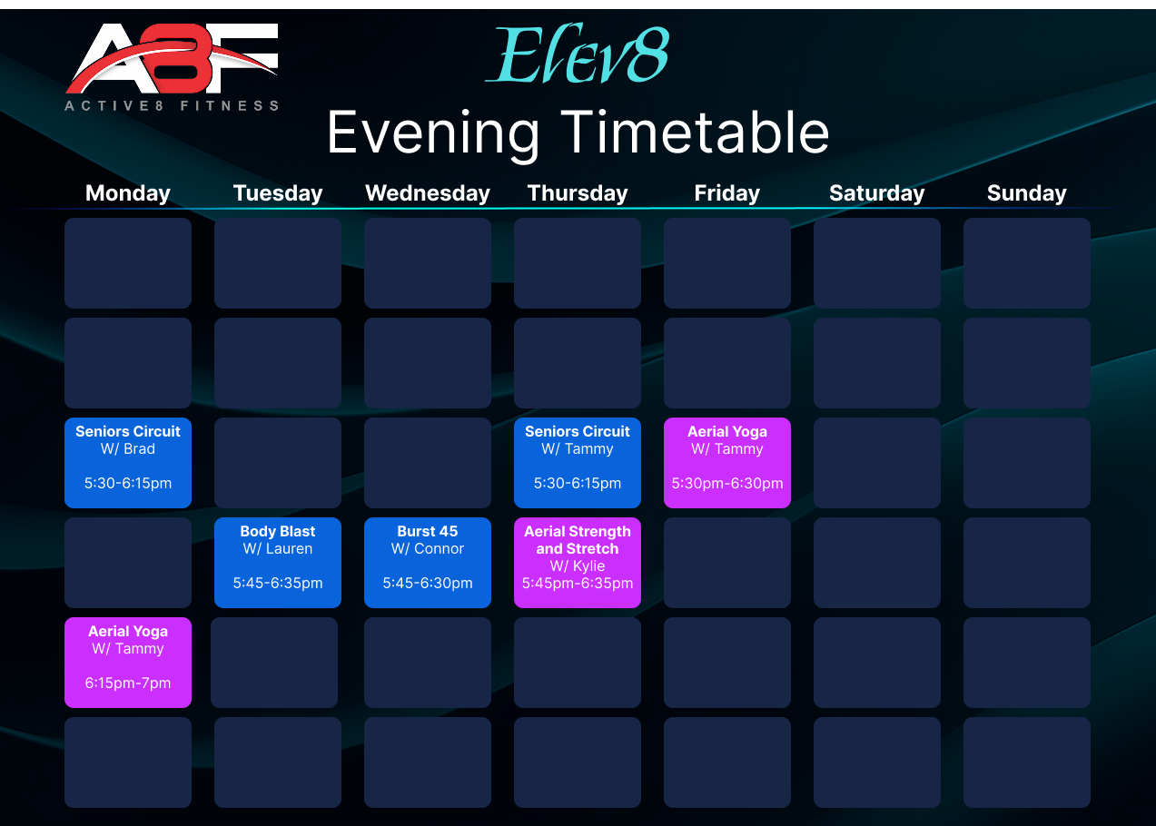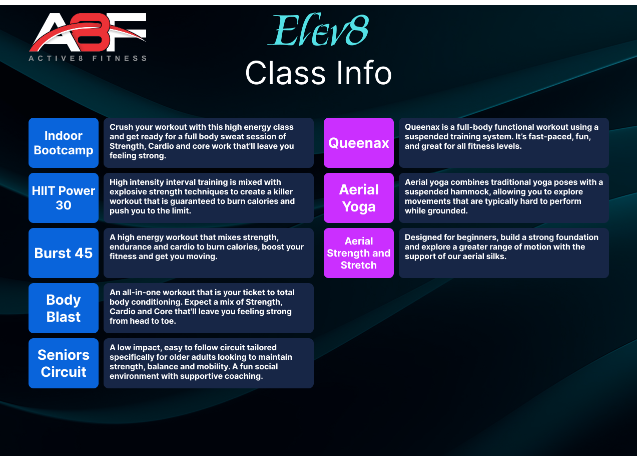 Our Elite membership includes all classes + Elite classes ( in purple ).